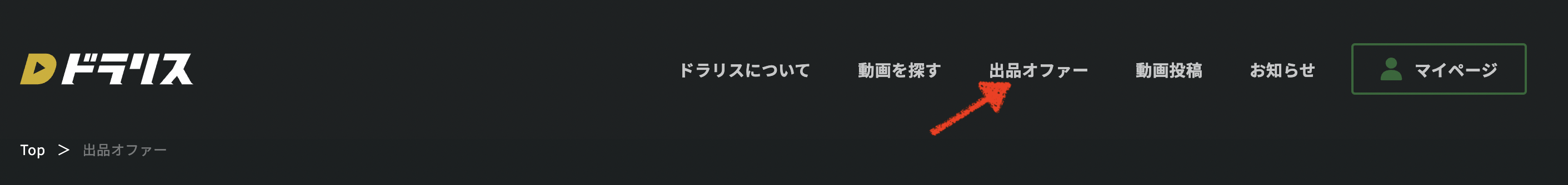 1. ログイン後、画面上部の「出品オファー」リンクをクリック