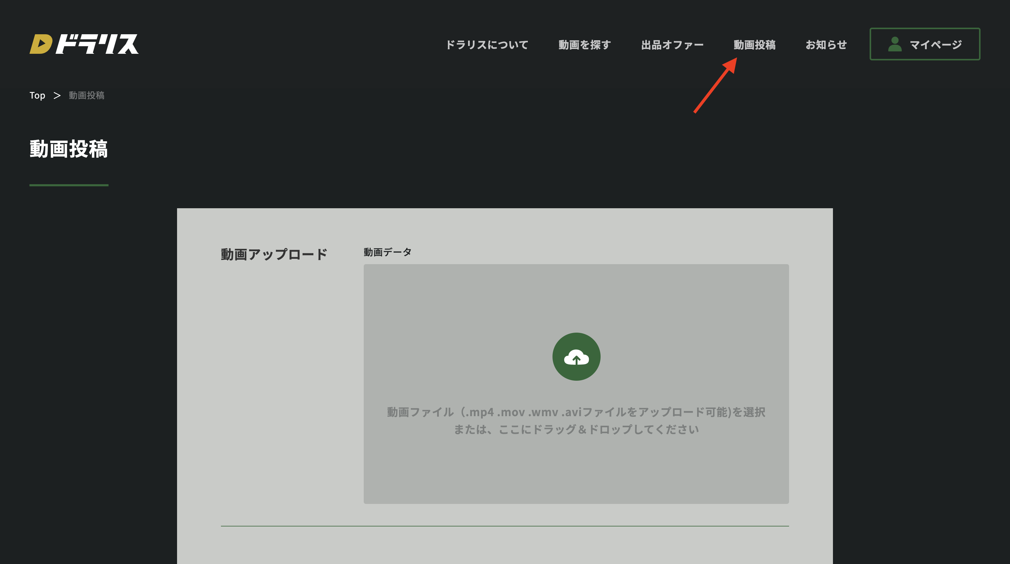 1. ログイン後、画面上部の[動画投稿]メニューをクリックする